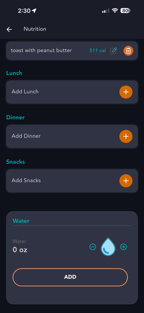 Here is how to add water to the Nutrition Tracker: