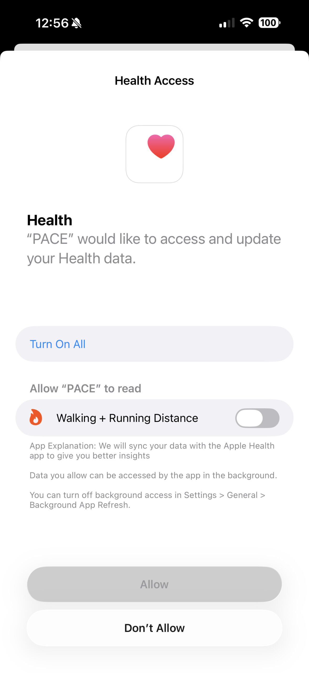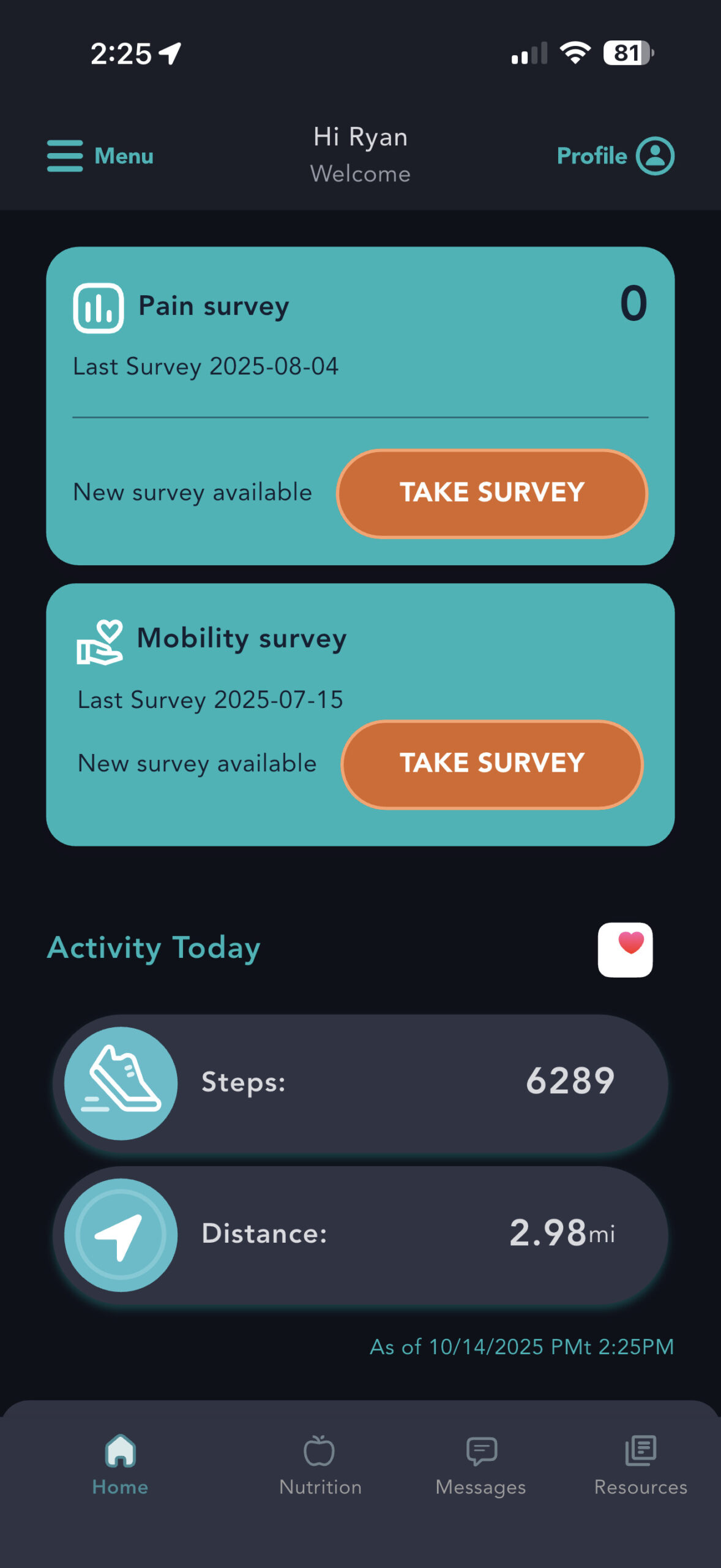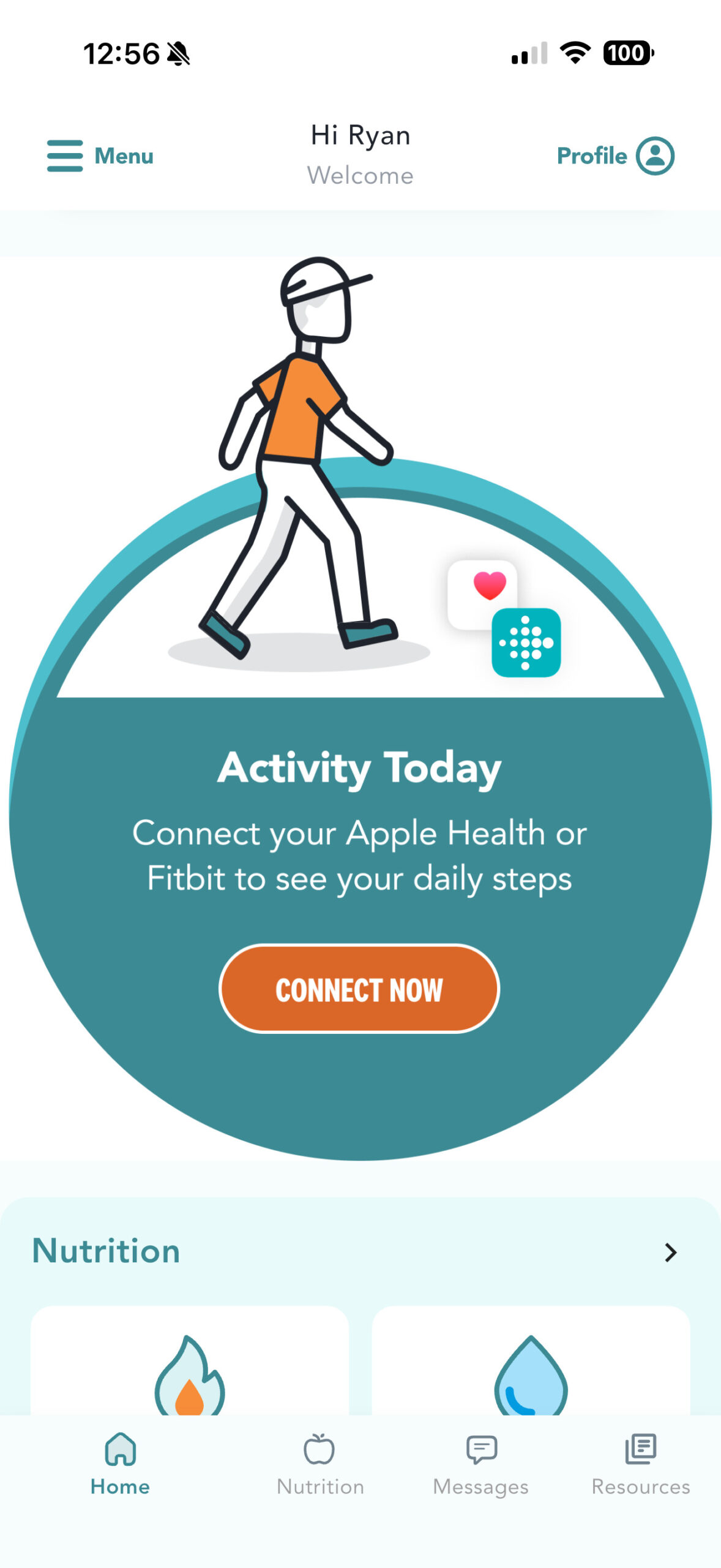 The PACE mobile app connects with your Apple Health or Fitbit smartwatch or wearable to track your physical activity and steps.