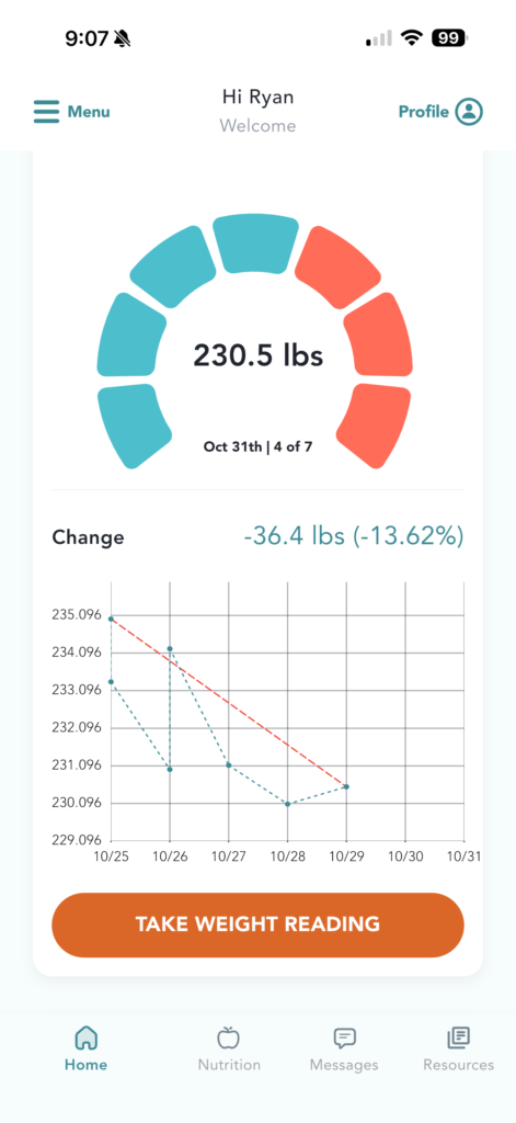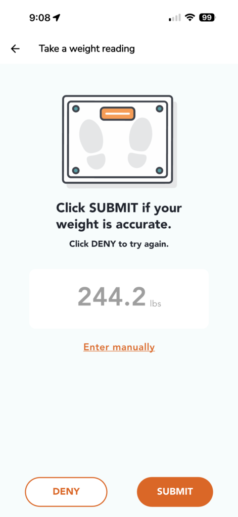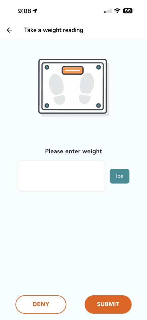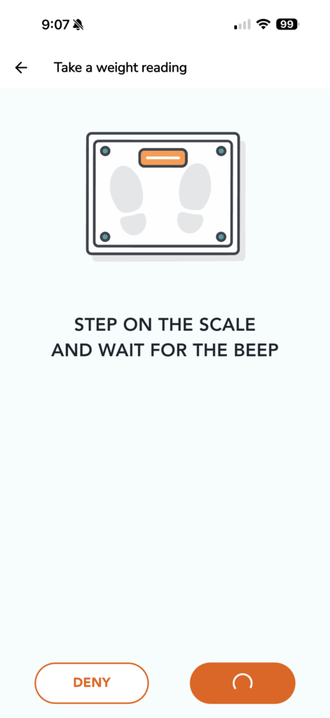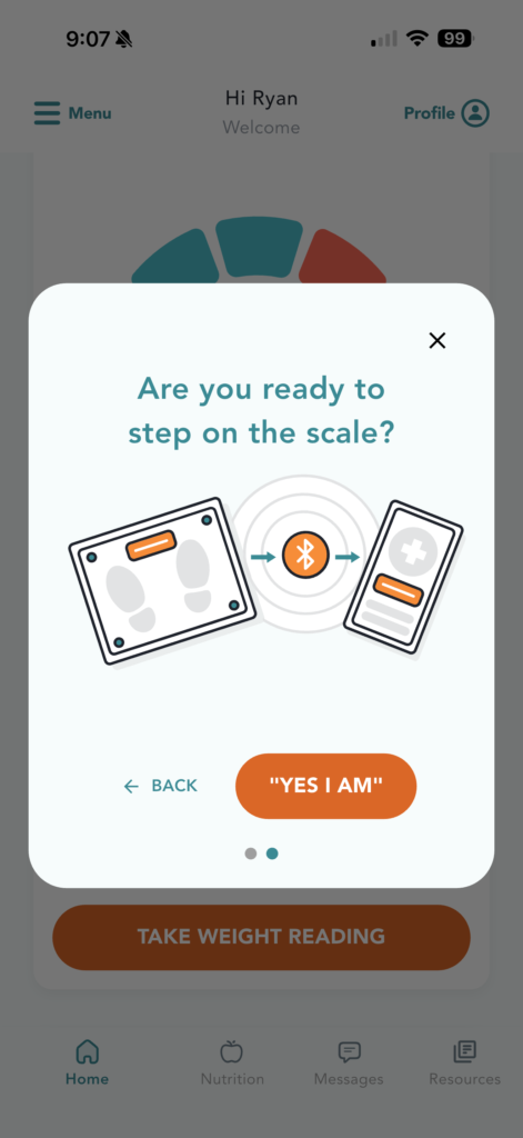 1) From the Homepage, scroll down and tap the “Take a Weight Reading” button