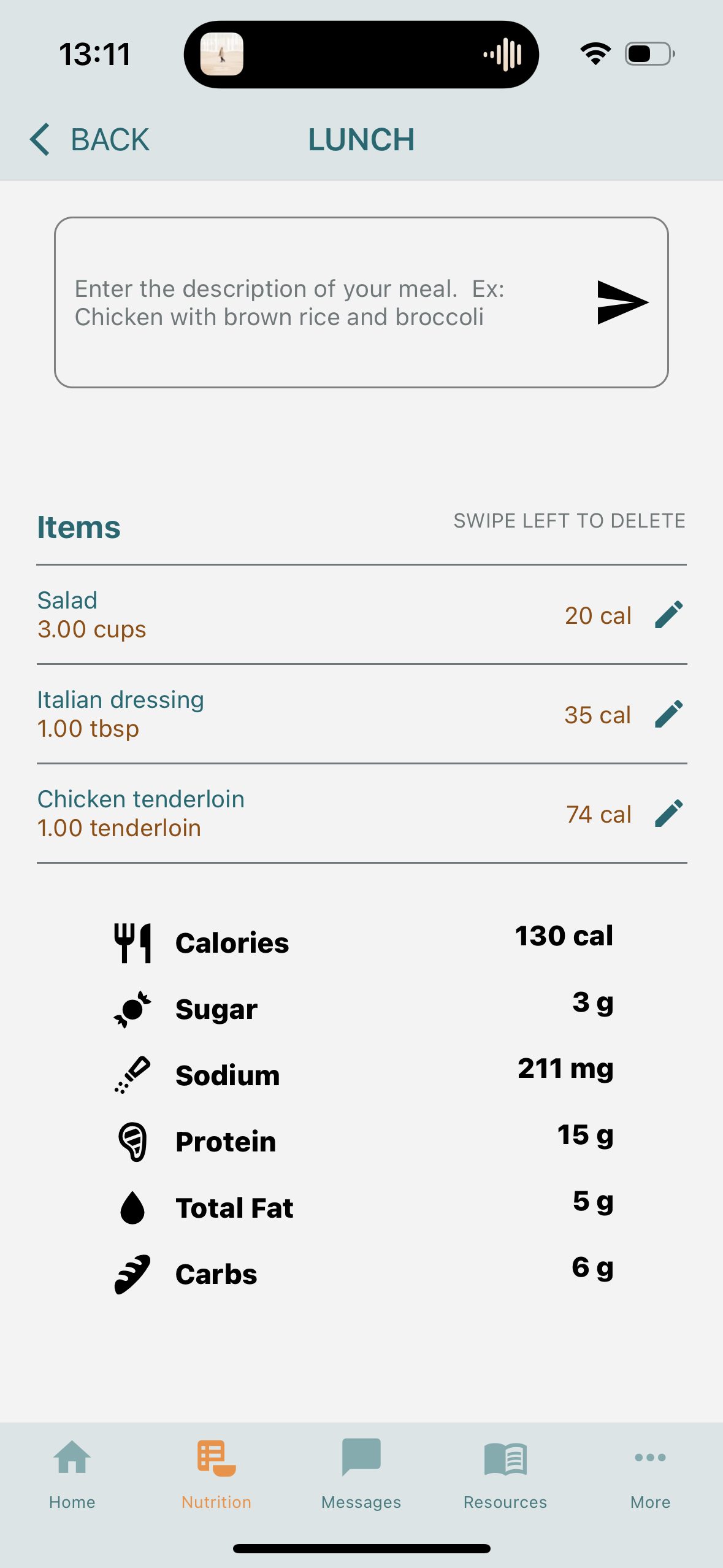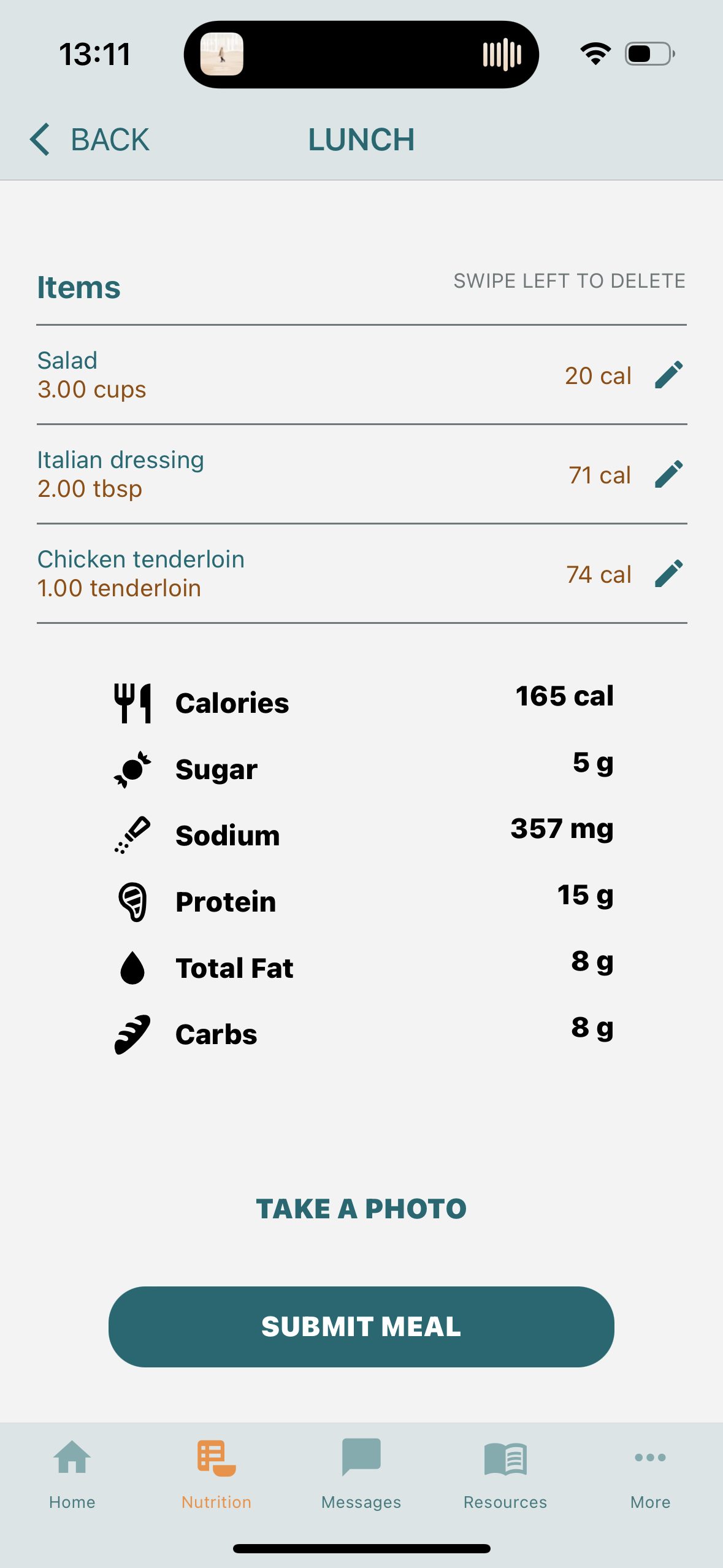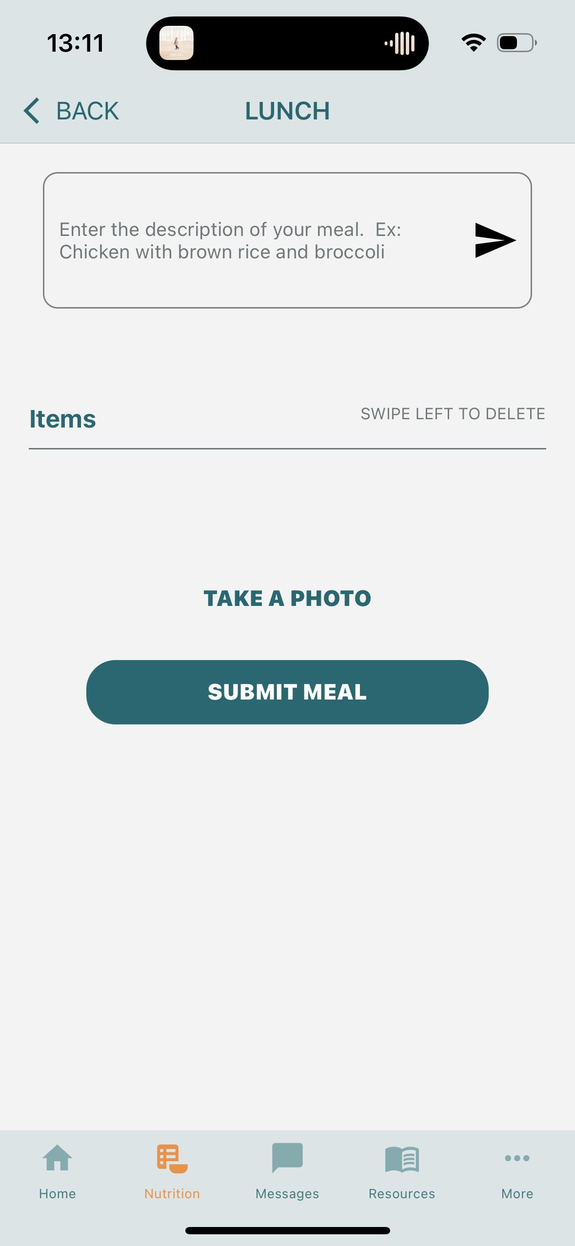 1) From the Homepage, tap “Add Meal” or tap on the “Nutrition” tab
