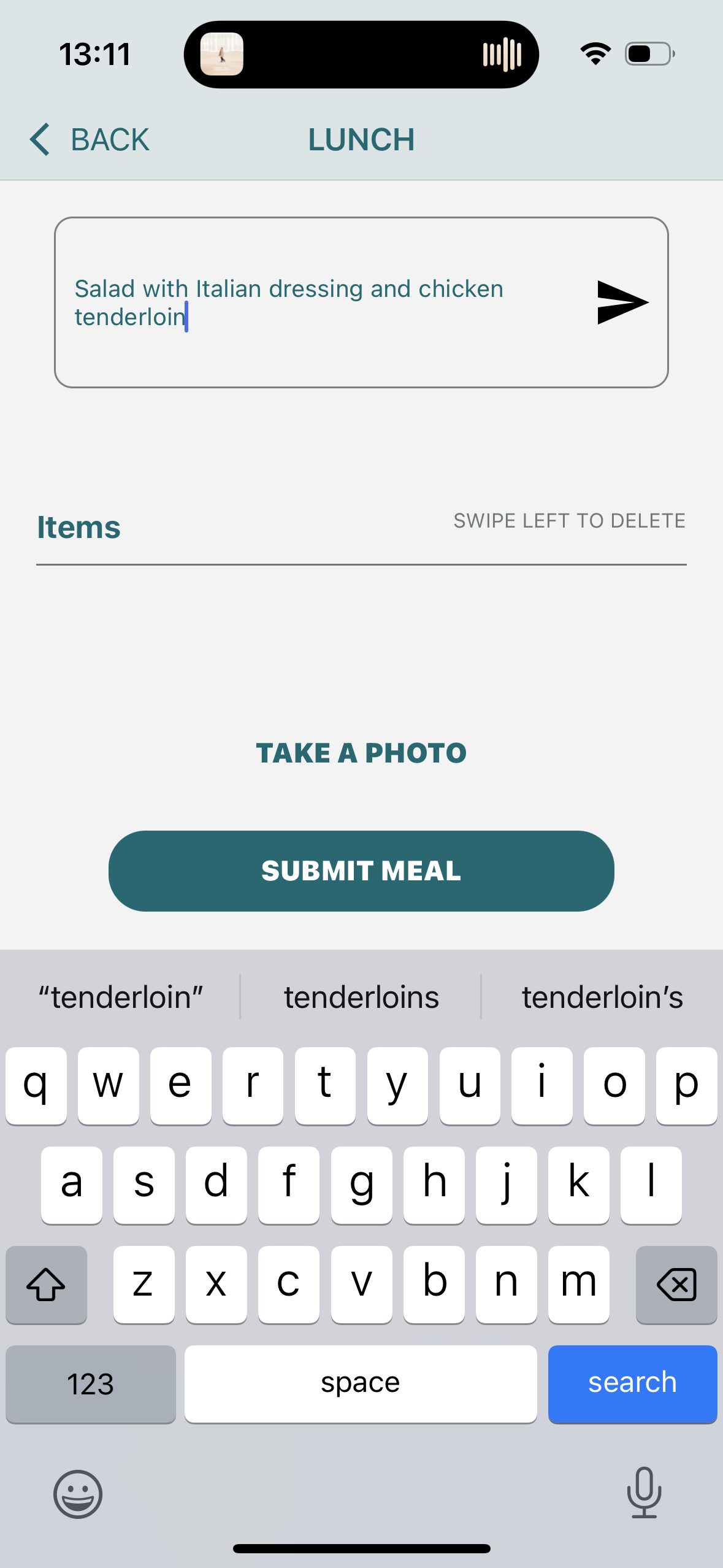 2) Tap “Add a meal” (breakfast, lunch, dinner or snack)