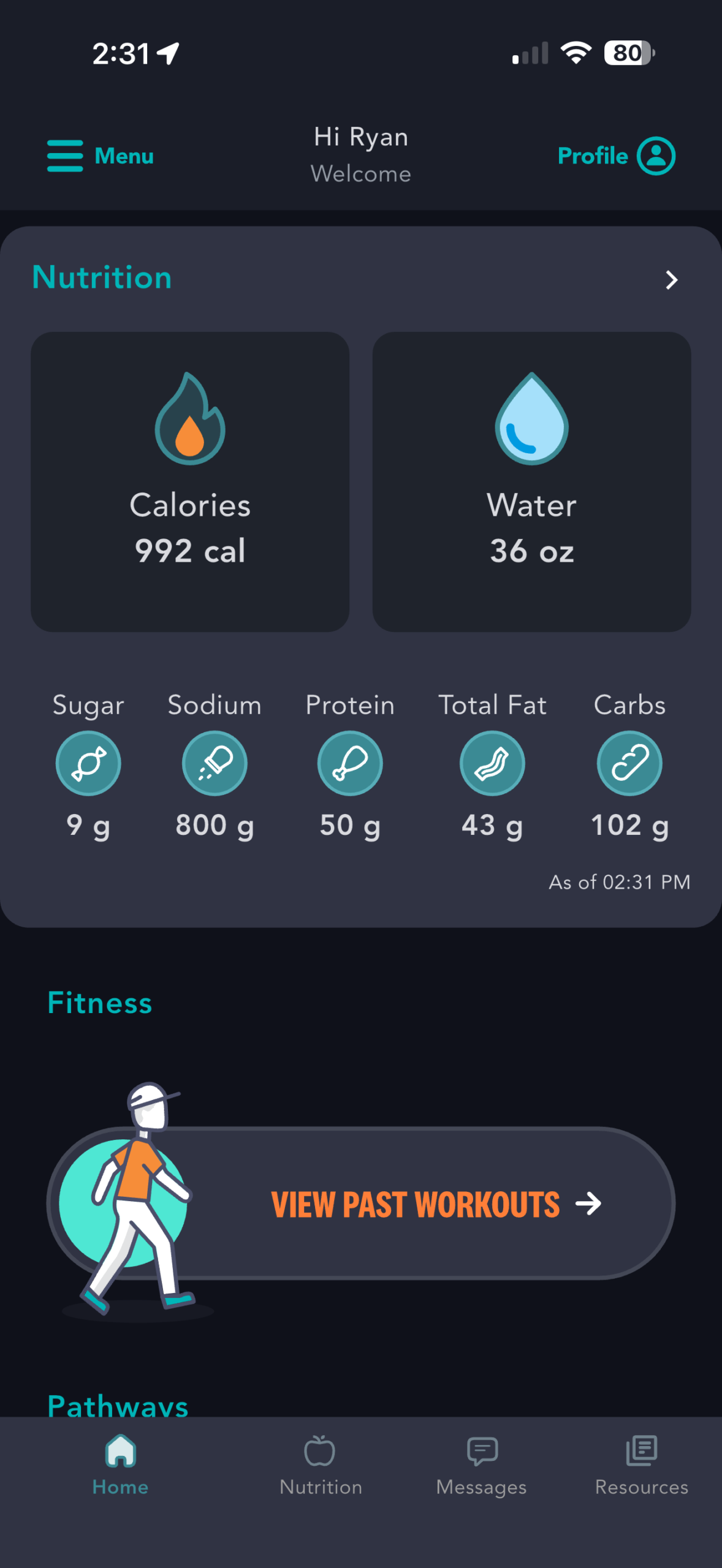 1) From the Homepage, tap on “Nutrition” tab in the bottom navigation menu