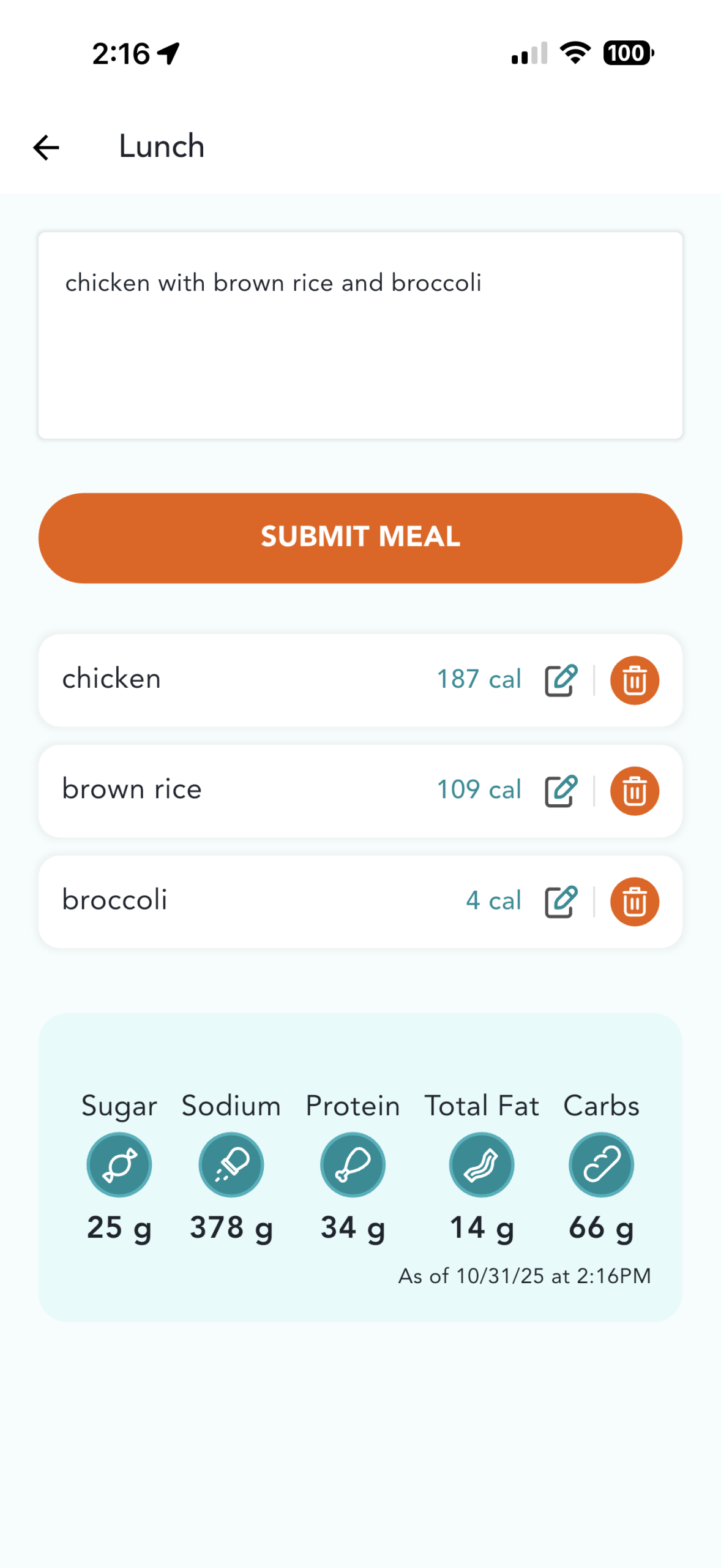 Here’s how to add meals by typing up detailed descriptions of your items in the Nutrition Tracker: