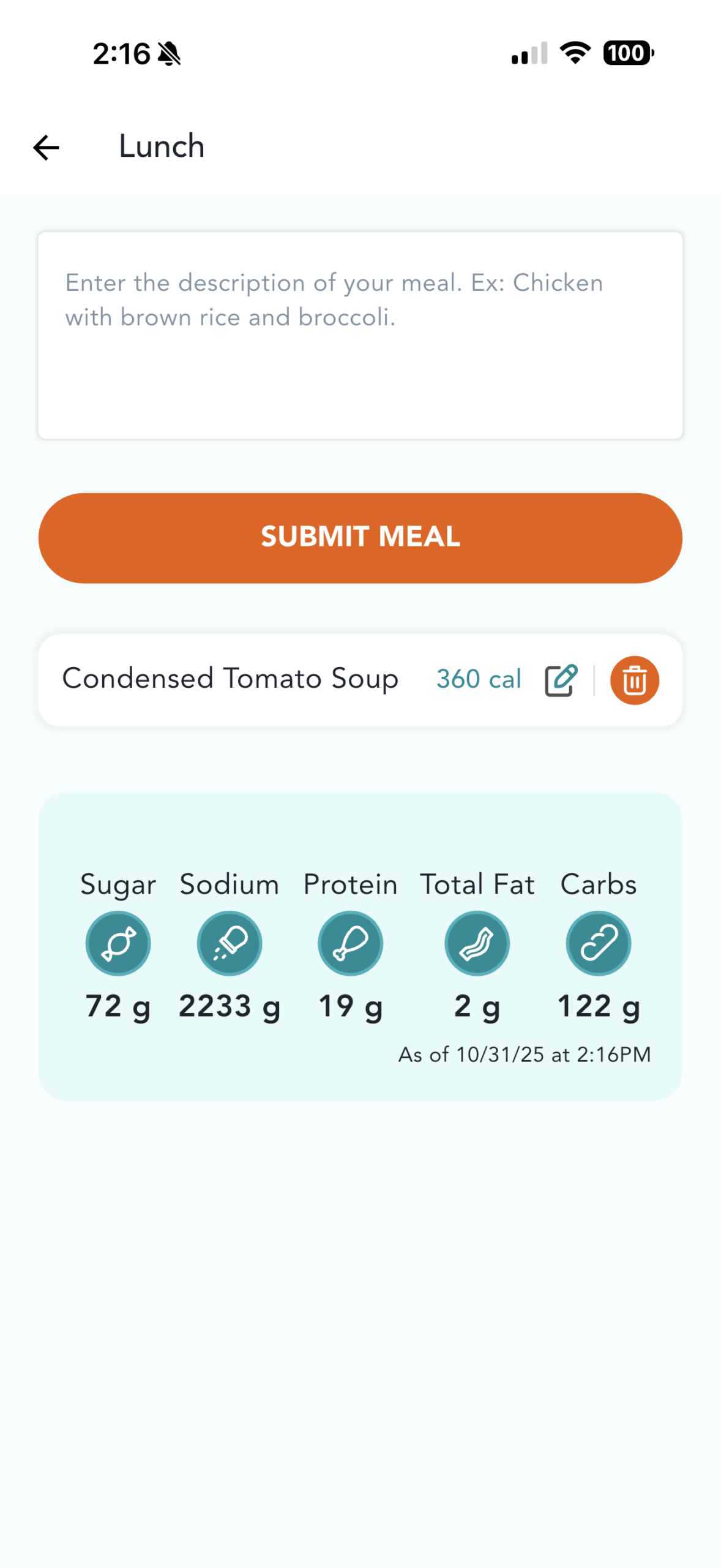 5) Enter a brief description of your meal