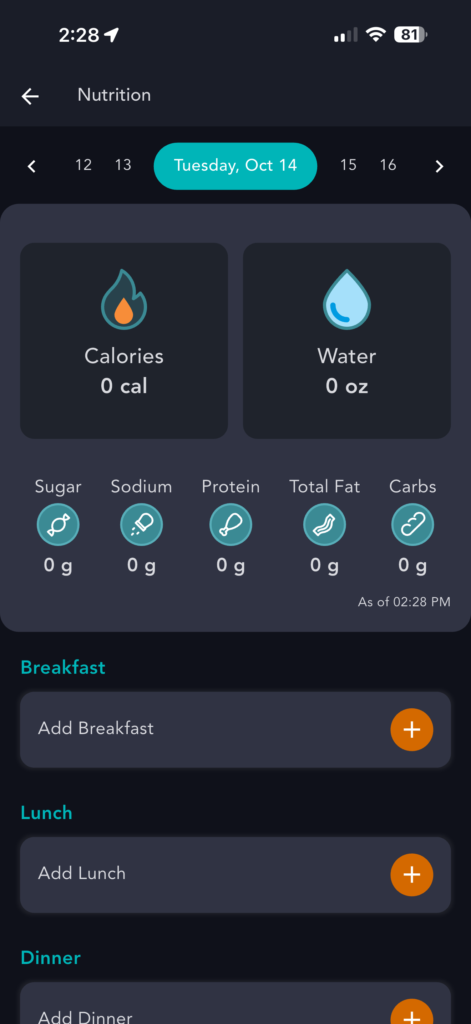 1) From the Homepage, tap “Nutrition” in the bottom navigation.