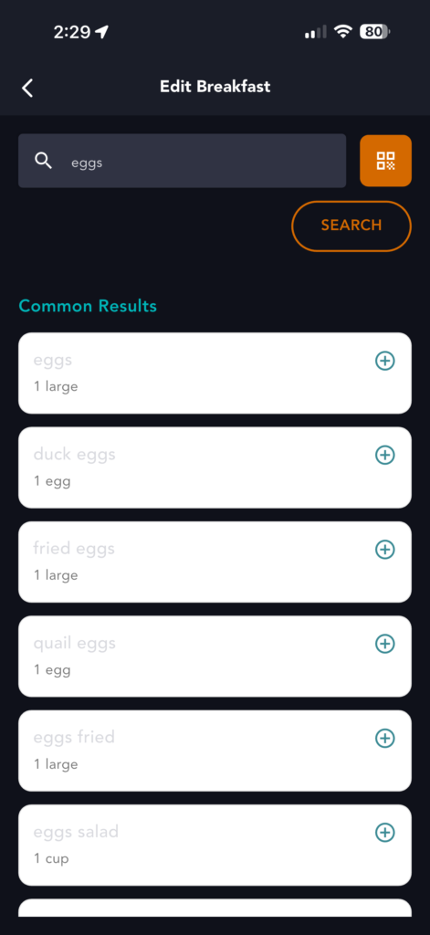 2) Tap “Add” under breakfast, lunch, dinner or snack