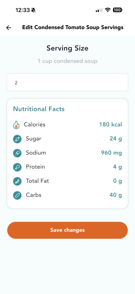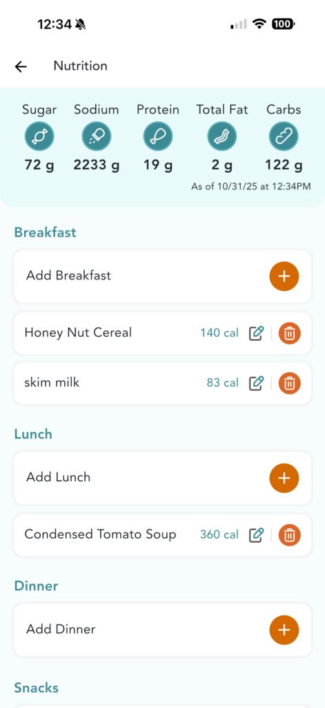 7) You will be taken back to the “History” page. Here, you can enter another item or tap “Back” to go back to the main Nutrition tab.